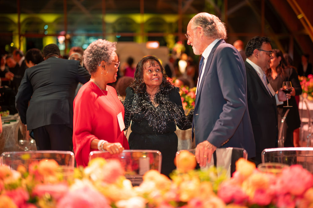 Photo of Ruth V. Creary , Ph.D. (center) of the Creary Family Foundation speaking with Governor Jon S. Corzine.