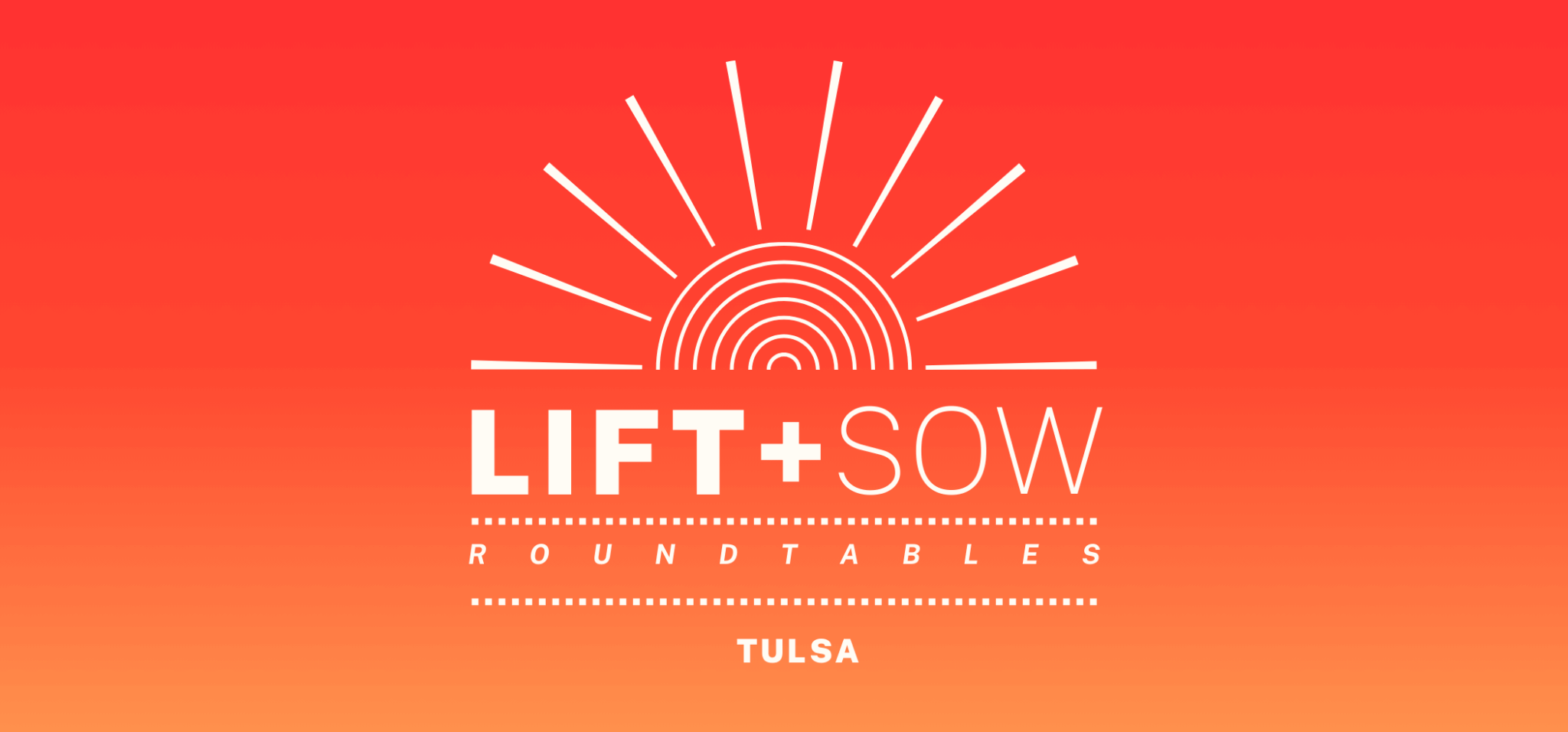 Orange banner with white son image reading "LIFT + SOW Roundtables Tulsa